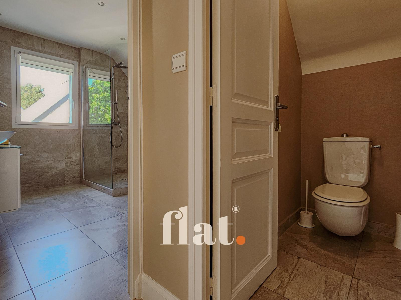 Une salle de bains complète d’environ 10 m² (baignoire et douche), ainsi qu’un second WC indépendant, complètent cet étage.