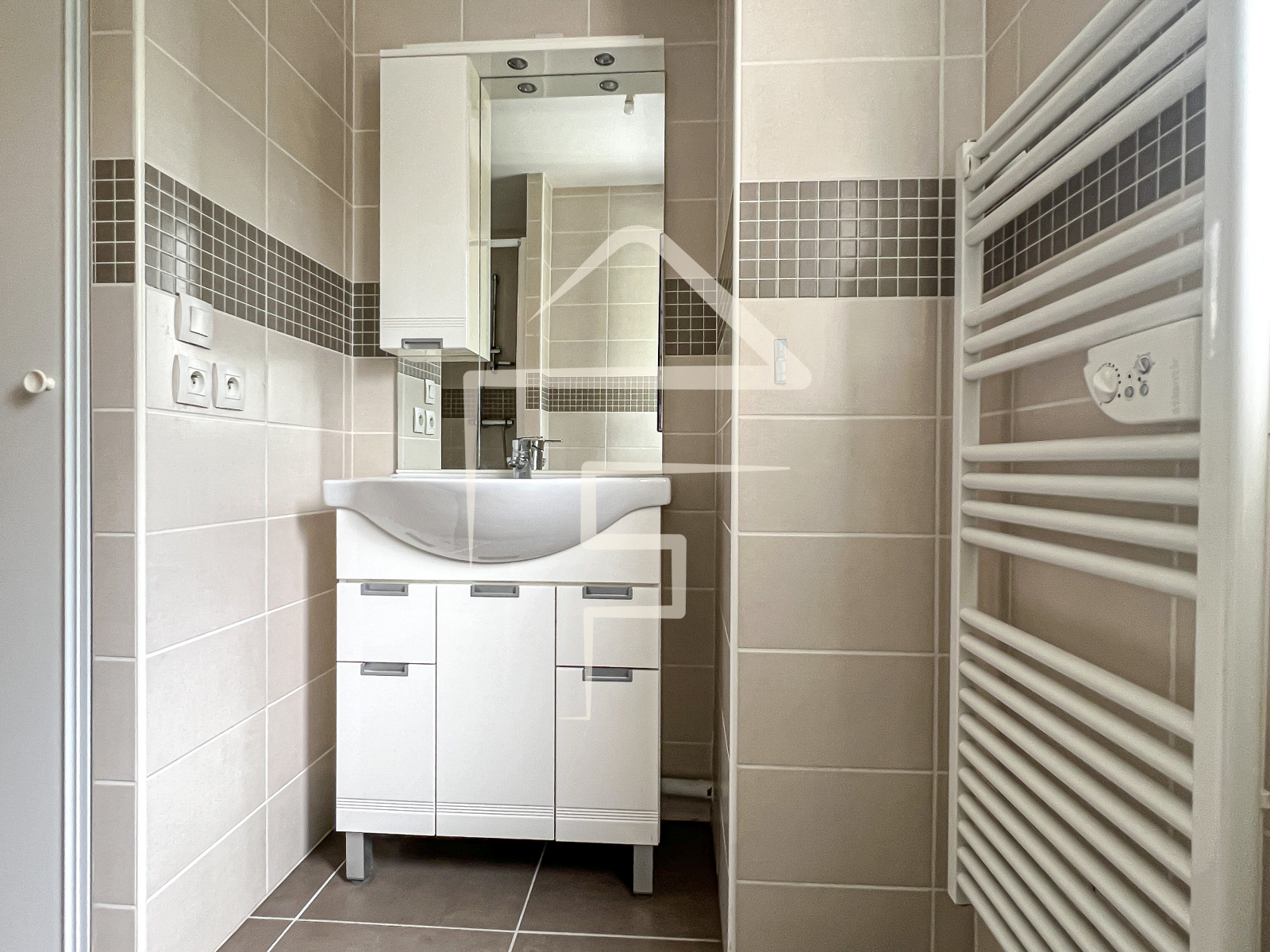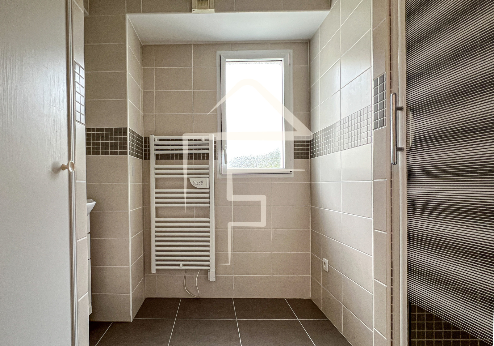 Rare pour un studio, il bénéficie de grands WC séparés, avec lave-mains, et suffisamment d'espace pour les ustensiles de ménage. La salle d'eau, aux finitions particulièrement soignées, est équipée d'une douche, d'un meuble vasque et d'une machine à laver. Vous aurez même le plaisir de bénéficier d'une fenêtre oscillo-battante.