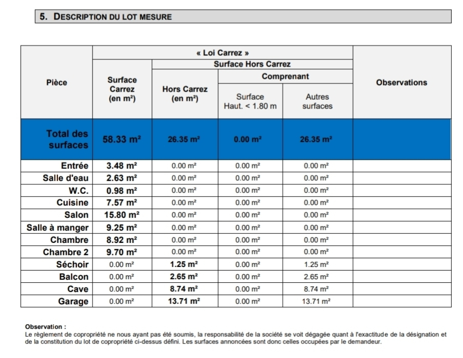 / Surface Carrez 58,35 + 1, 25 m2 de Séchoir intégré à l'appartement + Balcon de 2,65m2