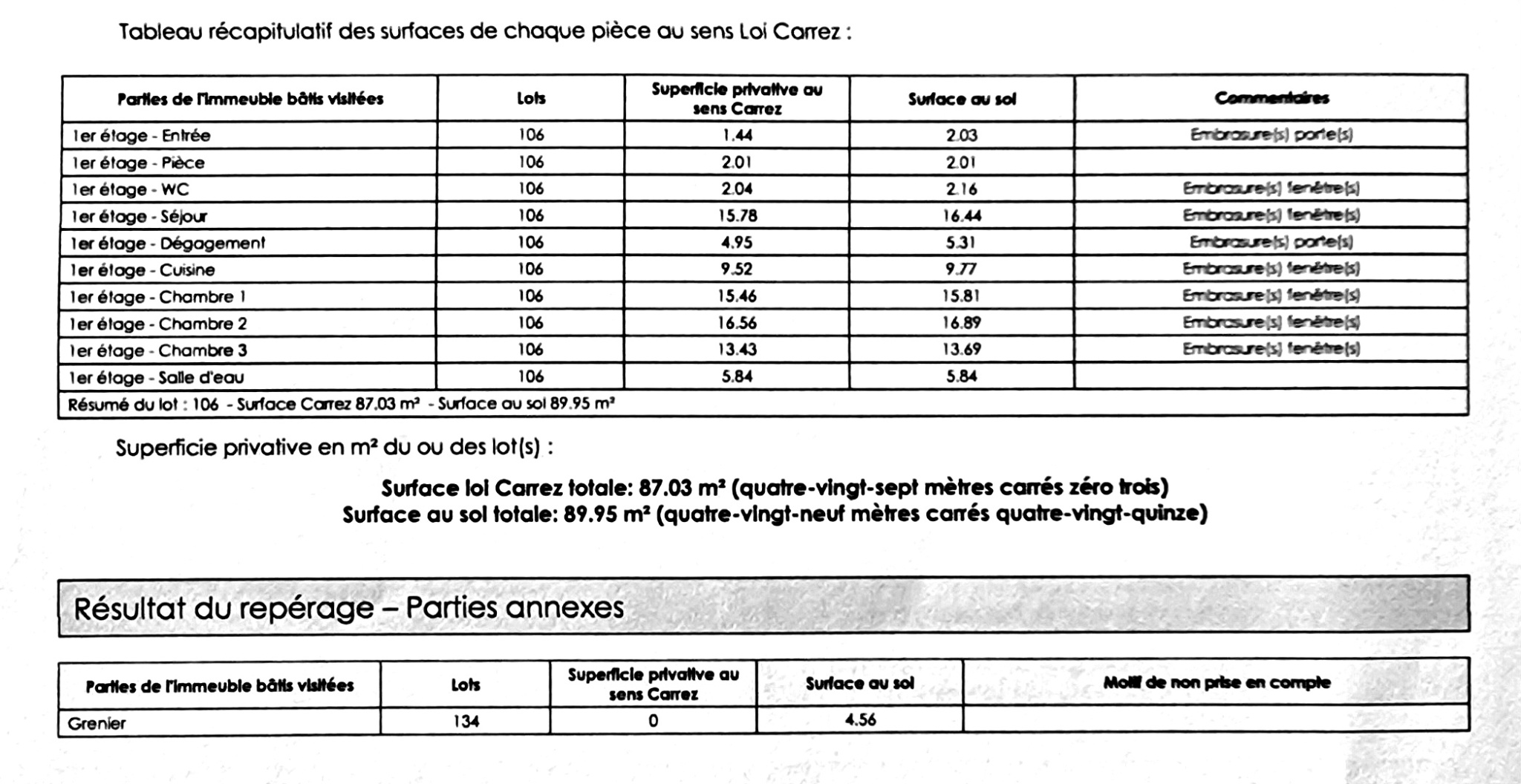 T4 RUE FOURE - 87 m2 - 3 Chambres + Cave + Grenier / sans travaux / libre de suite