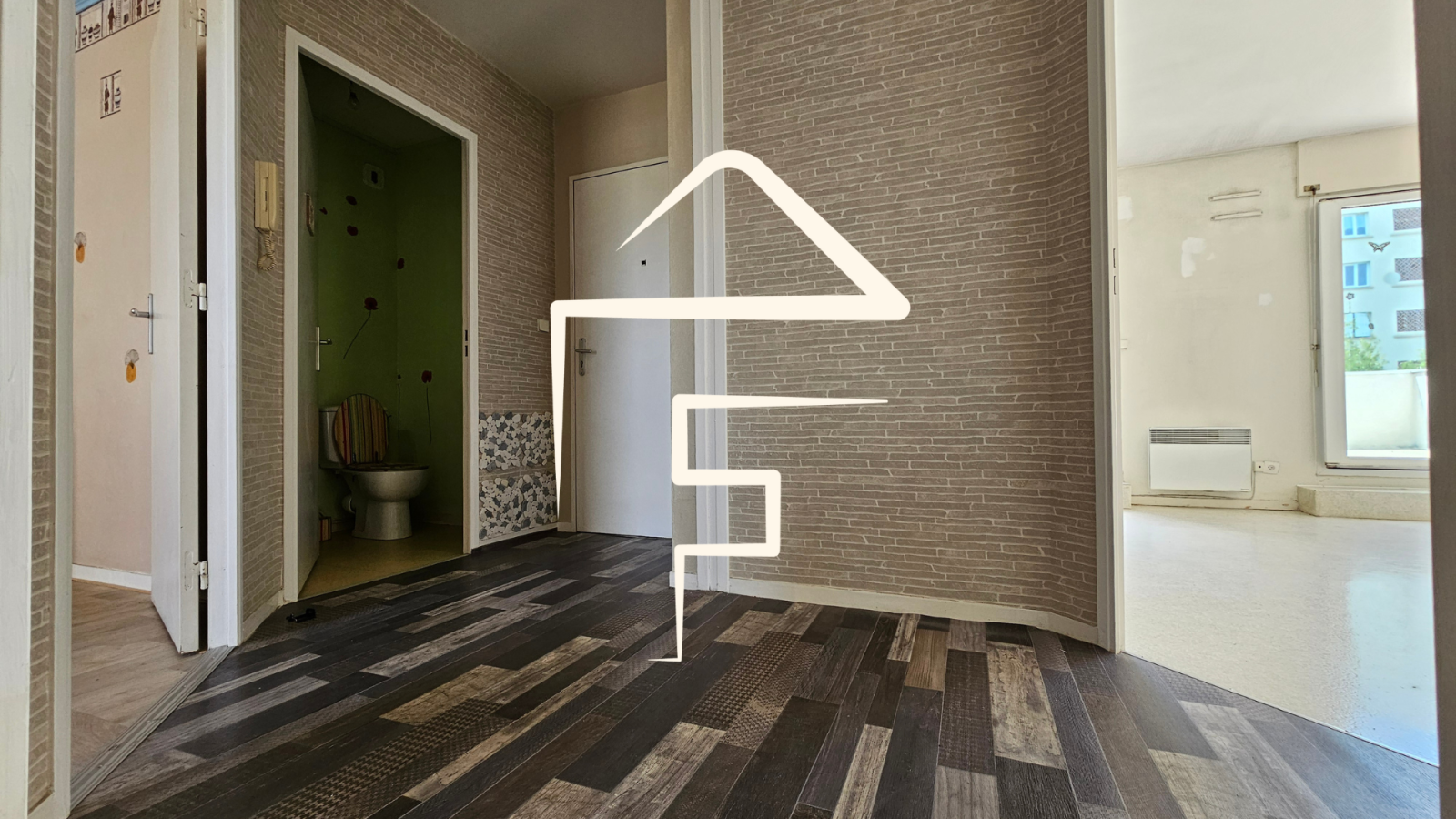 L'entrée de 5.95m2 distribue en étoile la cuisine, un 1er Wc, le couloir vers le coin nuit et le séjour..