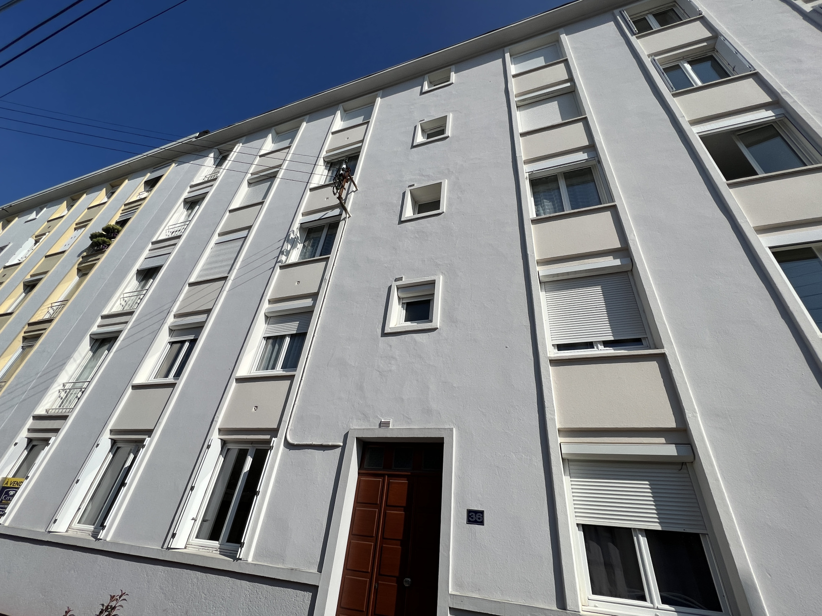 Local vélo commun, cave individuelle. Passage en DPE D avec remplacement chaudière + isolation par l'intérieur du mur de façade arrière.