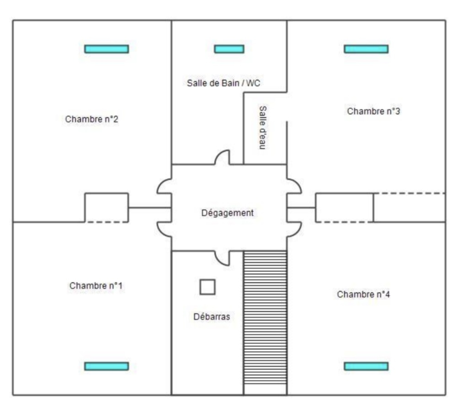 À l'étage, 4 chambres de taille confortable (environ 10m2 carrez à 15m2 au sol), dont la chambre parentale, qui dispose de sa propre d'une salle d'eau.