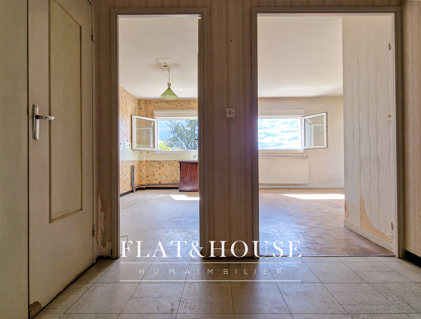 Une rénovation globale est à prévoir : menuiseries (notamment la baie du salon), reprise des sols, murs, plafonds, cuisine, sanitaires, électricité à mettre aux normes. Volets roulants électriques fonctionnels.