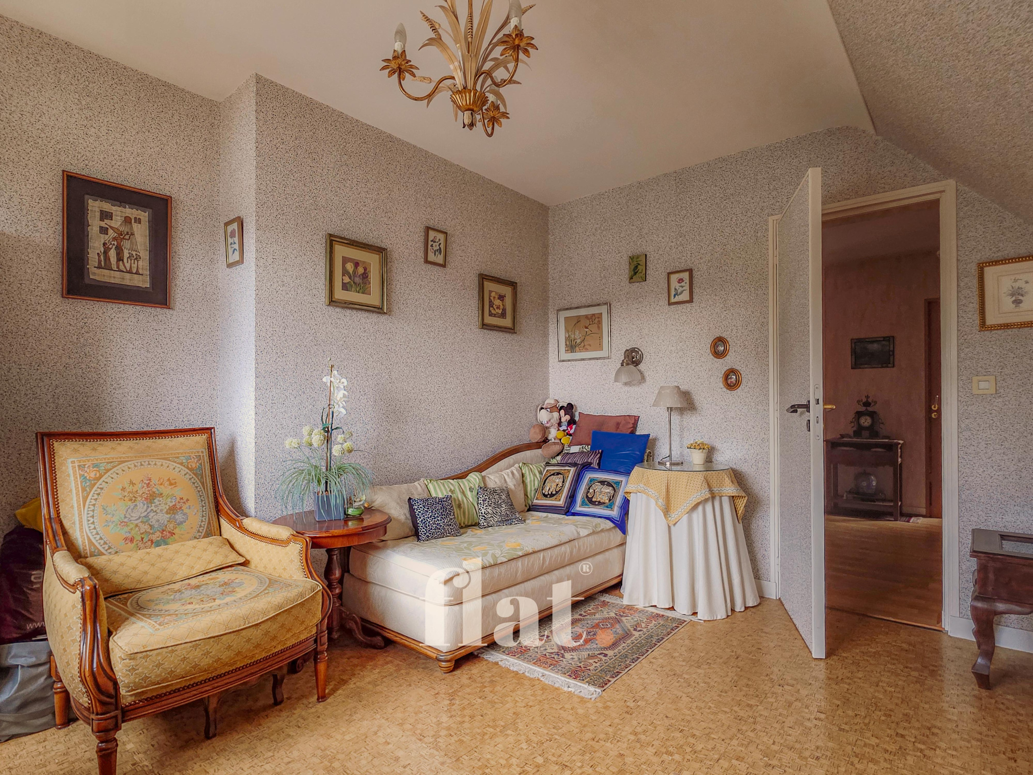À l'étage, 4 chambres (trois de 12m2 et une de 9,5m2) sont distribuées par un palier. Deux d'entre elles bénéficient de leur propre balcon, et toutes, sauf une, sont agrémentées de placards aménagés.